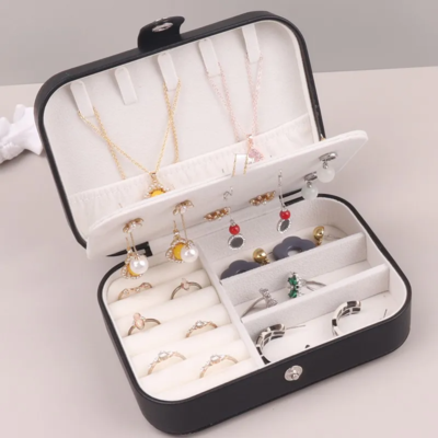 Guarda y protege tus joyas favoritas con este elegante estuche joyero, diseñado para mantener anillos, cadenas, aretes y pulseras siempre organizados y seguros. Su interior práctico y compacto lo convierte en el aliado ideal tanto para el uso diario como para llevar de viaje.