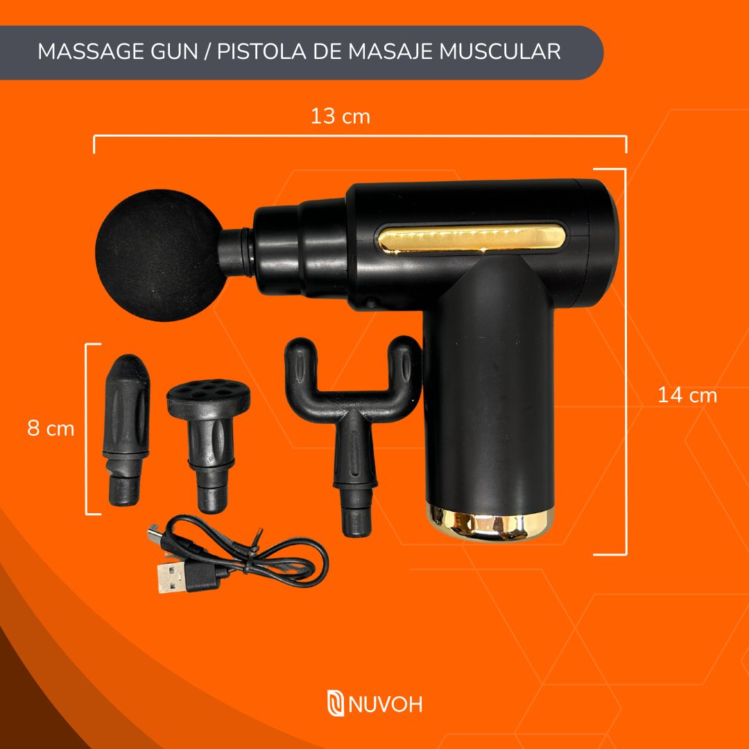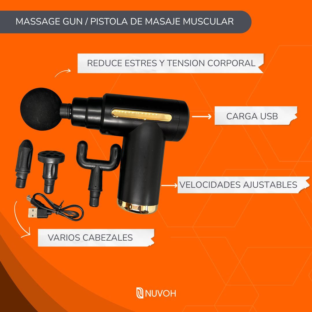 Descubrí la revolución en la recuperación muscular y el alivio del dolor con nuestra pistola de masaje muscular (Massage Gun). Diseñada para atletas, entusiastas del fitness y cualquier persona que busque un alivio profundo de la tensión muscular, este dispositivo de percusión ofrece una terapia de masaje profesional directamente en la comodidad de tu hogar. Su potente motor y sus cabezales intercambiables te permiten personalizar cada sesión, apuntando a grupos musculares específicos para reducir el dolor, mejorar la circulación y acelerar la recuperación.