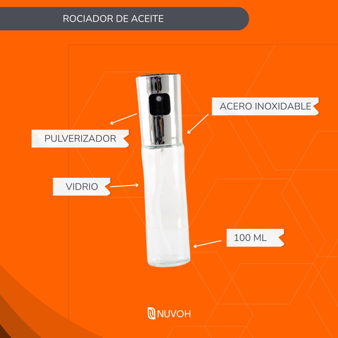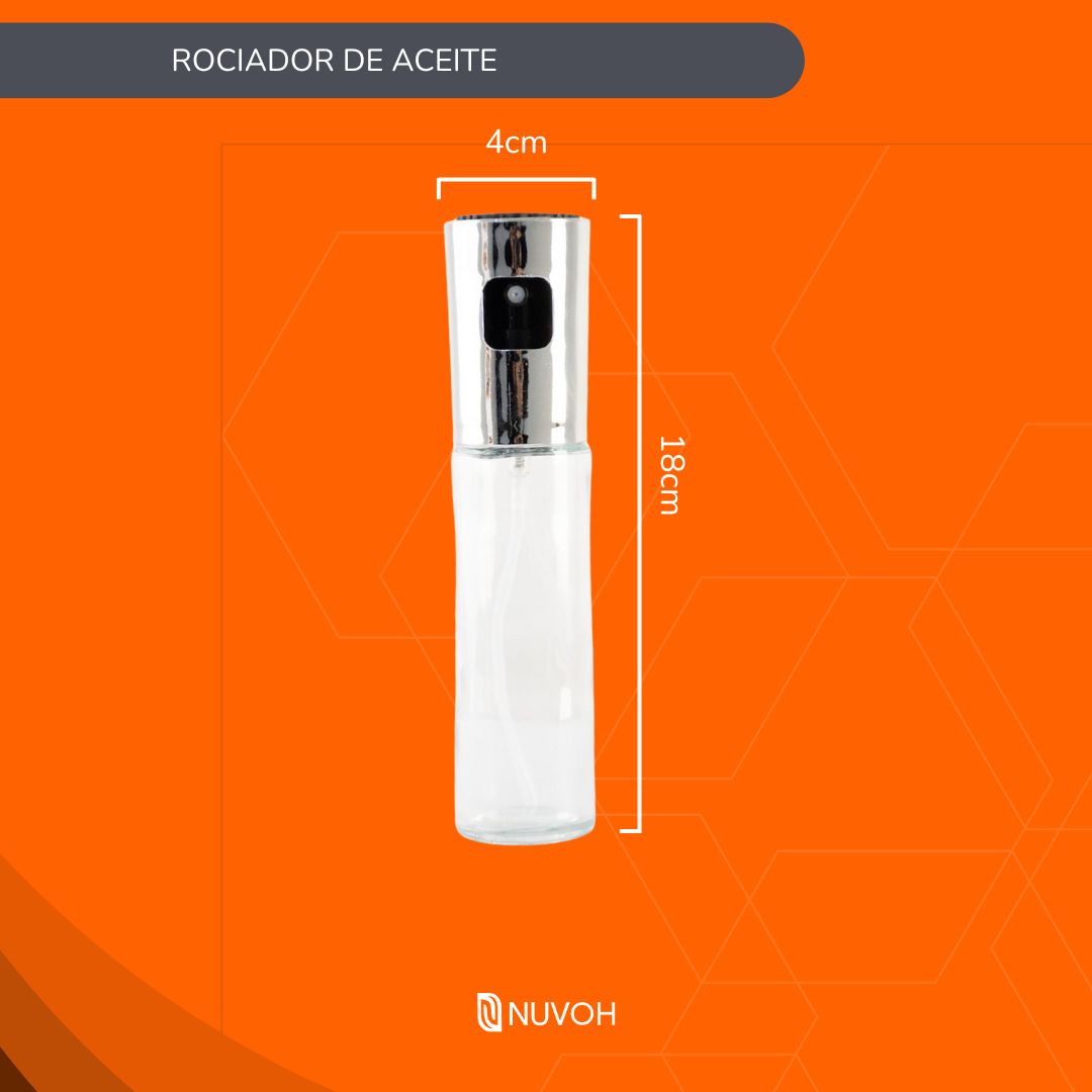 Su diseño elegante y funcional permite rociar aceite de manera uniforme, controlando la cantidad y reduciendo el consumo de grasas. Ideal para aderezar ensaladas, preparar parrillas, hornear o freír de forma más saludable.