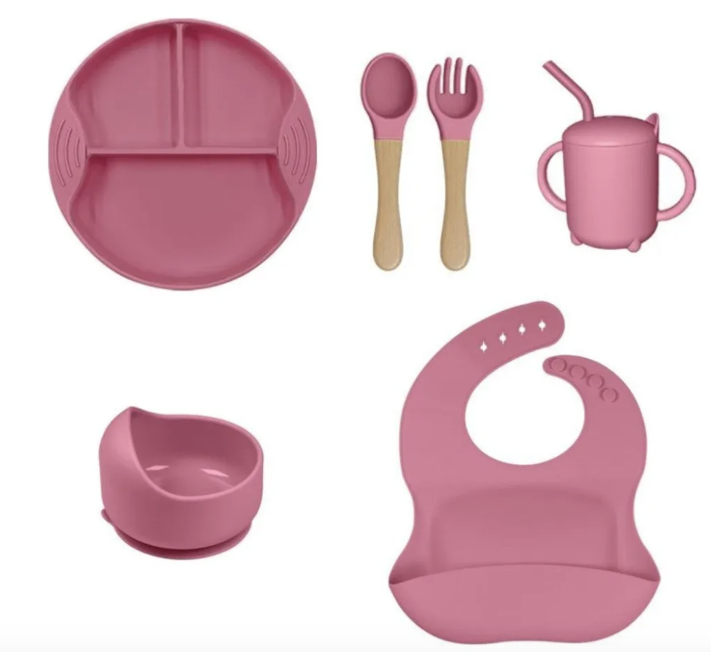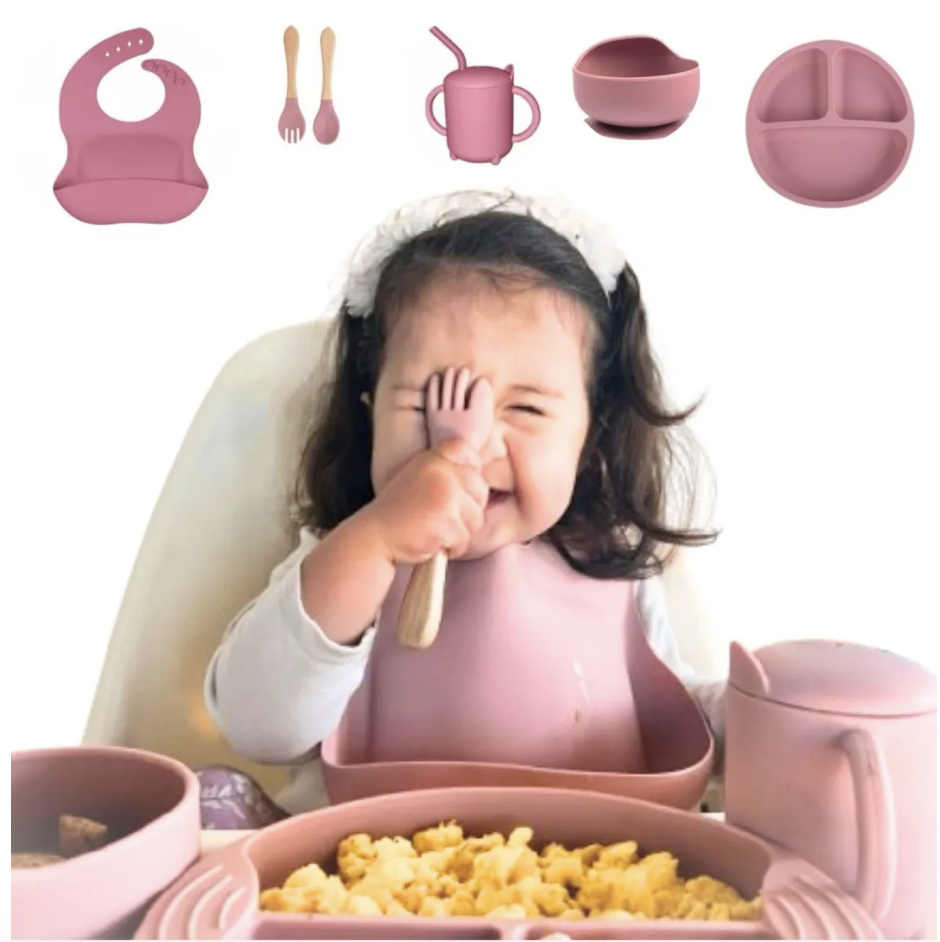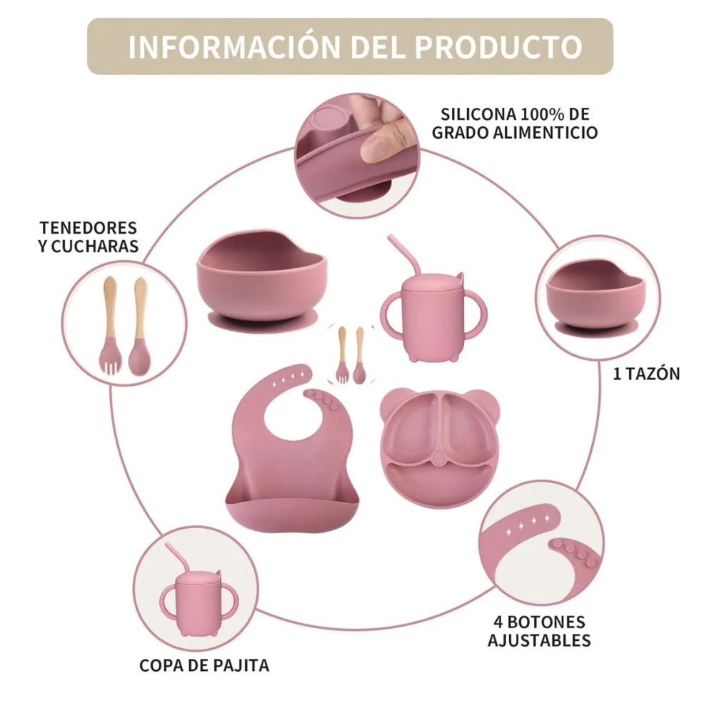 Set Alimentacion Bebe Plato Antideslizante Silicona Completo