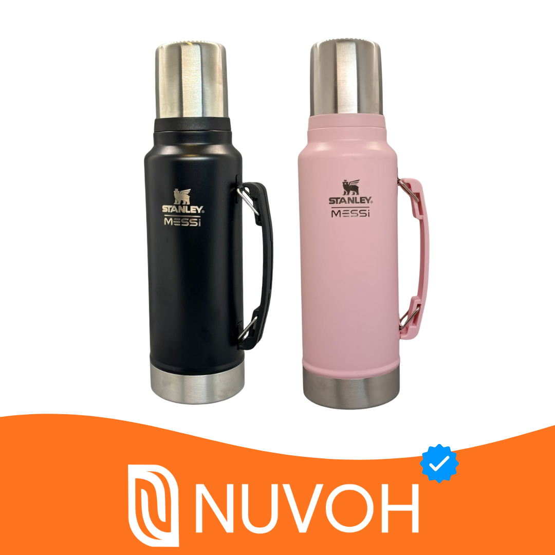 Con su robusta construcción de acero inoxidable y un elegante acabado en negro mate, este termo de 1.2 litros lleva grabado el icónico logo de Stanley y la palabra "MESSI", rindiendo homenaje a la grandeza. Mantiene tus bebidas calientes o frías hasta por 32 horas y el hielo por hasta 160 horas, ideal para cualquier aventura, jornada laboral o para acompañarte en cada partido. Su manija ergonómica asegura un transporte cómodo, haciendo de este termo un artículo de colección y uso diario.